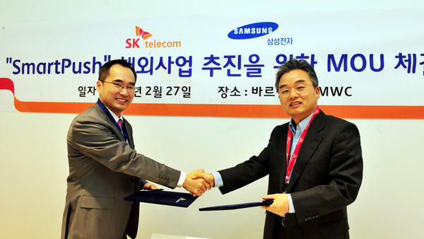 SK텔레콤과 삼성전자는 양사가 보유한 통신망 관련 핵심 역량과 기술을 바탕으로 스마트 푸시의 해외 사업을 함께 추진키로 했다.