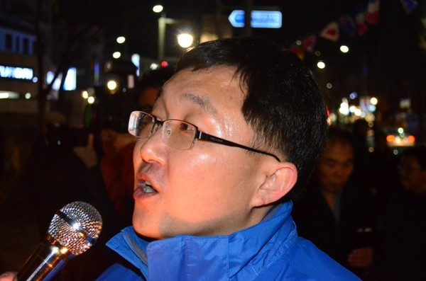 오후 7시에 재개된 집회에는 김용태(중단 사진) 의원이 참가해 탈북자 문제에 대한 자신의 견해를 밝혔다.