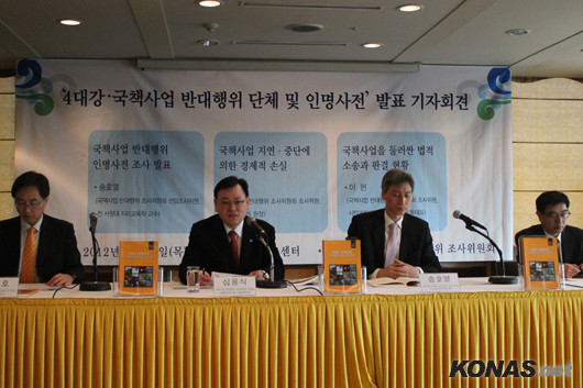 ▲ ‘국책사업 반대행위 조사위원회’가 15일 오후 중구 한국프레스센터에서 4대강 및 7대 국책사업을 반대한 행위자들의 활동(주장)과 이에 참여한 인사를 조사한 '국책사업 반대행위 인명사전' 발간 기자회견을 가졌다. ⓒkonas.net