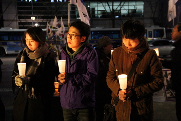 동반으로 참석한 한 부부는 문화제가 시작한지 10분 쯤 지나 도착했다. 이들은 "오늘 처음 참석했다"고 했다. 낯설었는지 머뭇거리는 모습을 보이기도 했다.