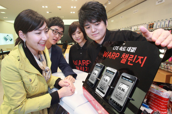 고객들은 속도체험존에서 속도측정 애플리케이션을 활용해 각 통신사의 LTE속도를 직접 비교 체험해보고 ‘LTE WARP’에 가입할 수도 있다.