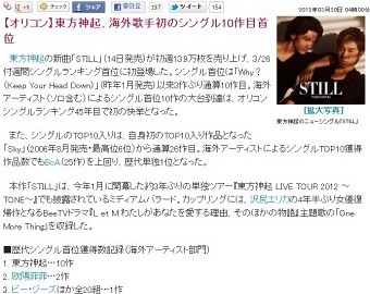 이는 일본 역대 해외 아티스트 사상 최초의 기록이자, 1968년 오리콘 랭킹 발표 이래 처음으로 수립된 신기록. 이로써 동방신기는 자신들이 세운 '해외 아티스트 최다 1위' 기록도 갱신하는 성과를 거뒀다.