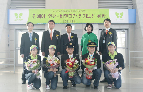 진에어는 이날 인천국제공항 114번 탑승게이트 앞에서 인천-비엔티안 정기 노선 취항식을 갖았다.