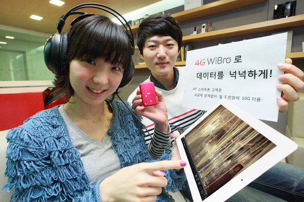 KT는 2일 고객들이 경제적인 요금으로 대용량 무선데이터를 마음껏 이용할 수 있는 ‘4G 와이브로’ 표준 및 결합 요금제를 출시한다고 밝혔다.
