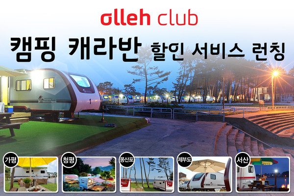 올레클럽에서 선보이는 이 서비스는 가평, 청평, 제부도, 자라섬, 안면도, 평창 등 전국 13개 지역에서 운영 중인 캠핑 캐라반을 온라인상에서 할인 예약할 수 있다.