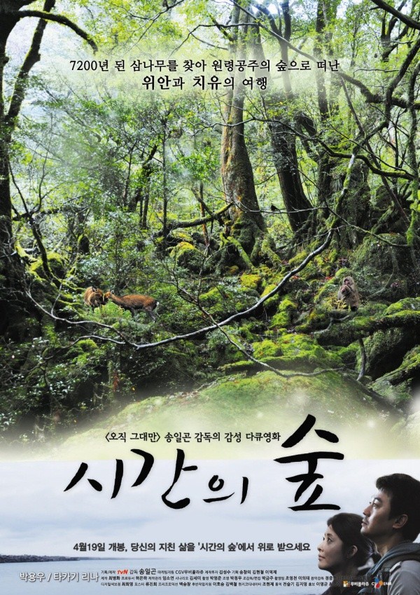 오래된 숲을 거닐며, 7200년 된 삼나무를 만나기 위한 여정 속에 두 사람은 조금씩 마음의 문을 열며 치유를 경험한다. <시간의 숲>은 이 시대를 살아가는 고독하고 지친 현대인들의 몸과 마음을 ‘치유’와 ‘소통’이란 주제로 아주 오묘하고도 신비롭게 풀어낸 대표적인 힐링무비(Healing Movie)라 평가받고 있다.