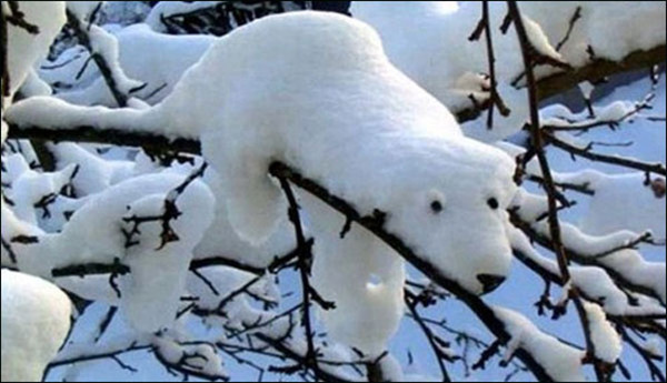 하지만 자세히 보면 이는 제목 그대로 '자연이 만든 백곰'이다. 눈이 나뭇가지에 내려 앉아 자연스레 백곰의 모양으로 만들어진 것.
