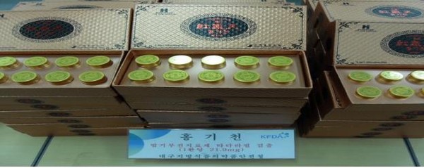식품의약품안전청 대구지방청은 9일 식품에 사용이 금지된 발기부전치료제 ‘타다라필’을 넣어 ‘홍기천’(기타가공식품)을 제조 및 판매한 업자를 적발했다고 밝혔다.