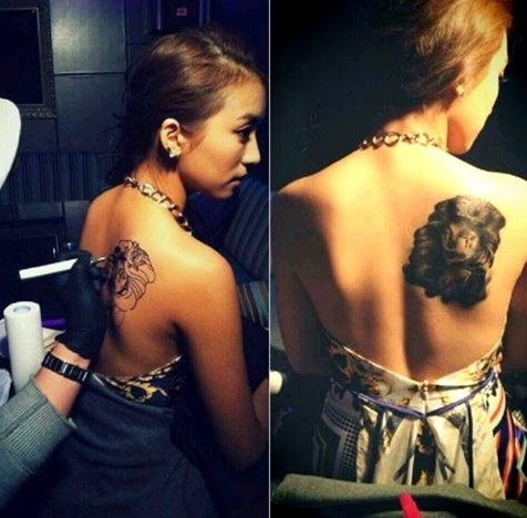 공개된 사진 속에는 오른쪽 등에 피에로 문신을 새긴 보라의 모습이 담겨 있다.
