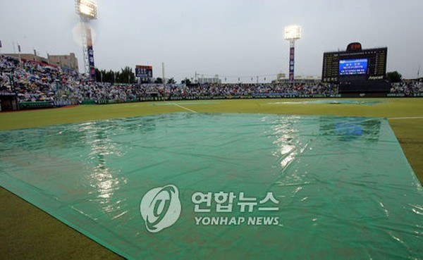 갑작스럽게 내린 비가, 한껏 달아올랐던 프로야구의 개막열기를 식혔다.