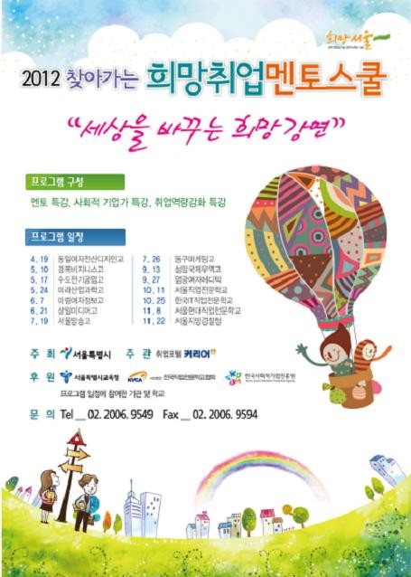 찾아가는 희망취업 멘토스쿨은 서울시가 야심차게 준비한 프로그램으로 특성화고교생과 취업준비생에게 멘토 및 사회적기업가 특강, 취업역량 교육, 현장면접을 진행한다.