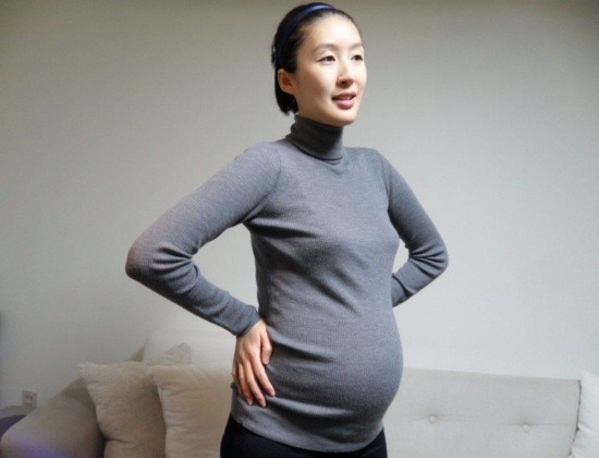 사진 속 홍진경은 자연스러운 민낯에 편안하고 따뜻해 보이는 회색 터틀넥 티셔츠를 입고 있으며 만삭임에도 불구하고 배만 나온 모습으로 빛나는 D라인을 자랑하고 있다.