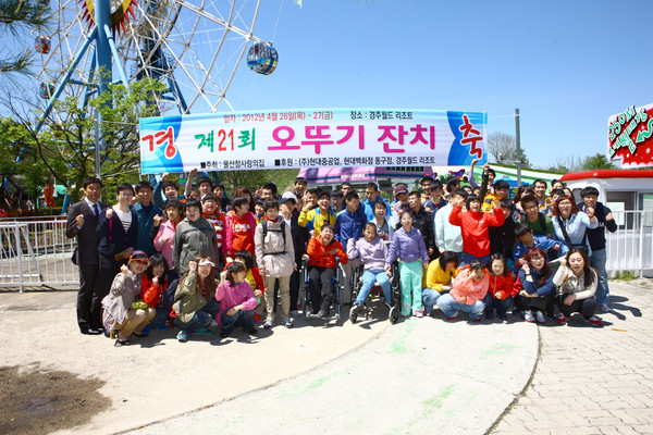 현대중공업은 26일과 27일 이틀간 경북 경주월드에서 울산 장애인 봄 소풍 행사인 ‘제 21회 오뚜기 잔치’를 연다고 26일 밝혔다.