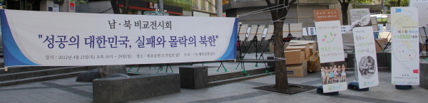 한편 이날 같은 장소에서는 '성공의 대한민국, 실패와 몰락의 북한'이란 남-북 비교전시회가 '행복한 통일로'의 주최로 열려 북한의 실태를 사진을 통해서도 보여줬다.