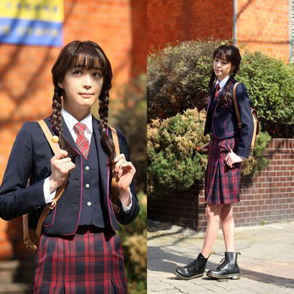 26일 공개된 MBN 새 수목드라마 <수상한 가족>(극본 경수/연출 이재갑)에서 양갈래 헤어스타일과 체크무늬 교복을 입은 여고생으로 변신했다.