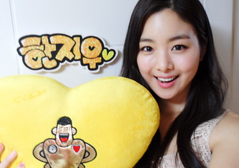 '베이글녀' 한지우가 SBS '강심장' 촬영장 인증샷을 공개했다.