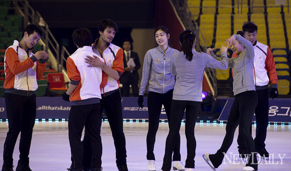 피겨여왕 김연아와 세계적인 피겨스타들이 함께 하는 'E1 올댓스케이트 스프링 2012' 기자간담회 및 공개연습이 5월 3일 오후 3시 서울시 송파구 방이동 올림픽공원 체조경기장 특설링크에서 진행됐다.