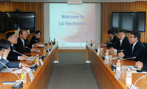 슈타이너 사무총장은 서울 여의도 LG트윈타워에서 LG전자 경영지원부문장 이영하 사장, LG CSR팀 김영기 부사장 등과 환담을 나눴다.