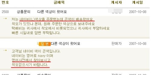 이에 담당자는 “고객님 네이비 색이 곤색입니다. 네이비는 영어로 navy이며 영어사전에서 찾아보시고 착오없으시기 바랍니다”라고 답해 네티즌들의 웃음을 유발했다.