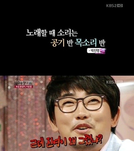 이날 방송에서 이승철은 최근 박진영이 'K팝스타'를 통해 "공기반 소리반"이라는 심사평을 한 것에 대해 "박진영이 왜 그랬냐. 공기반 소리반이 뭐냐"고 농담 섞인 핀잔을 던져 좌중의 웃음을 자아냈다