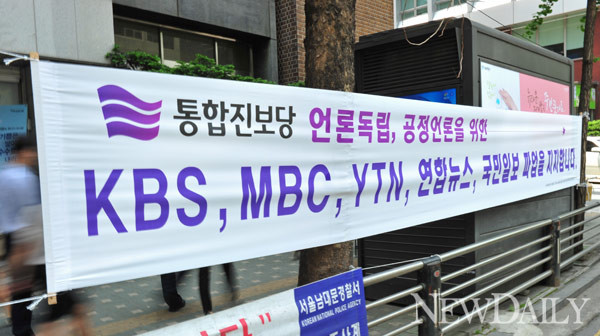 서울도심과 대학가 주변에 언론사의 파업을 지지하는 통합진보당의 플래카드가 설치되었다. 느닷 없이 등장한 통진당의 이런 플래카드를 보는 시민들의 눈이 곱지 못하다.