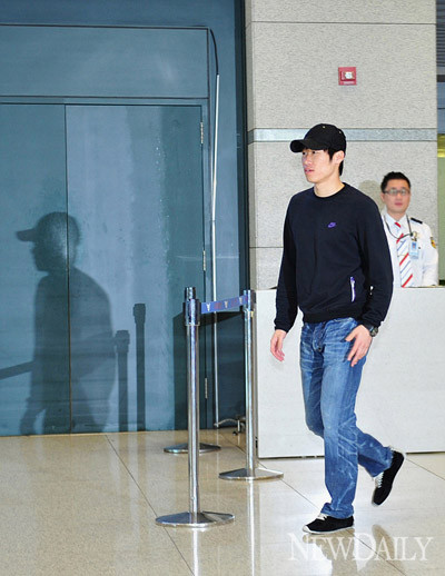 박지성이 수수한 차림으로 17일 인천공항을 통해 입국하고 있다.