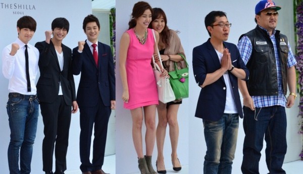 20일 신라호텔에서 열린 정준하 결혼식 현장. 왼쪽부터 찬성, 진운, 조정코치 김지호, 손담비, 소유진, 김제동, 데프콘.
