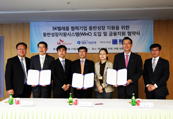 SKT는 이날 을지로 본사에서 IBK기업은행, 기업신용 정보업체인 나이스디앤비 등과 업무협약을 맺고 1, 2차 협력사들 간 동반성장 지원을 위해 함께 노력해 나가기로 의견을 모았다.