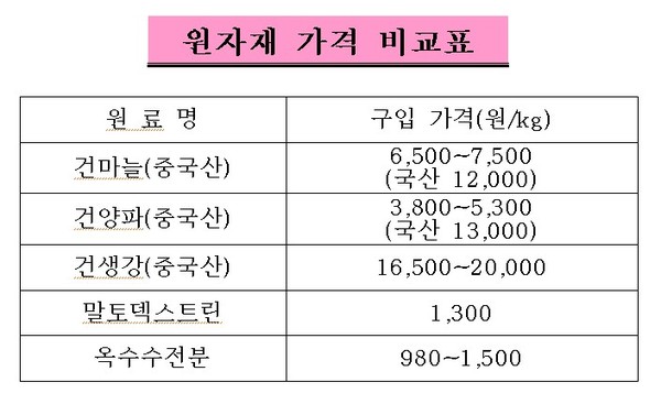 나머지 3명도 마늘, 양파, 생강가루에 값싼 옥수수전분을 2%~10%까지 섞은 후 원재료 함량을 100%로 속여 판매한 것으로 드러났다.