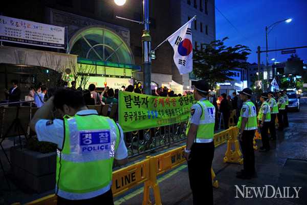 자리에 앉아보았다. 이내 곧 커피 한 잔을 들고 한 사람이 나타났다. 자세히 보니 이곳에 계속 머물면서 ‘탈북자 강제북송’을 외쳤던 자원봉사자였다.