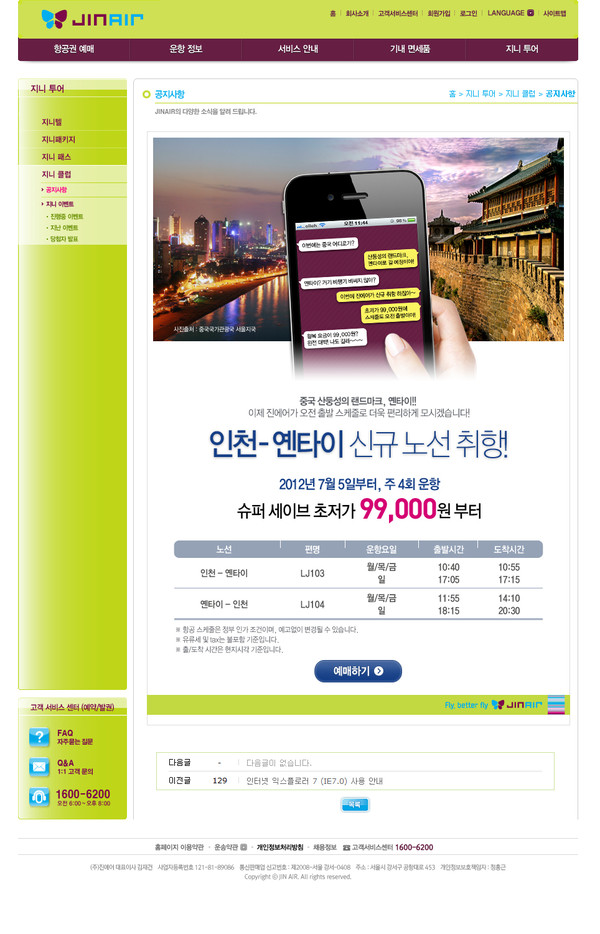 특가는 현재 진에어 홈페이지를 통해 예매 가능하다.