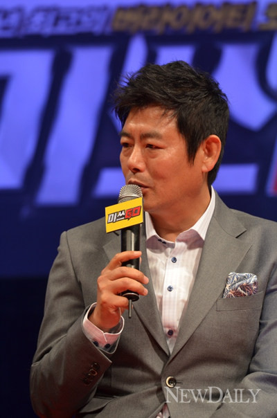 29일 서울 압구정 CGV에서 열린 영화 '미쓰GO' 제작보고회에 참석한 배우 성동일은 자신의 질문에 답하는 순간 고현정이 웃자 "현정아 선배가 말하는데 웃냐?"고 핀잔을 줬다.