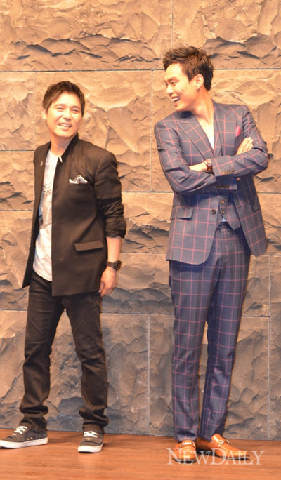 29일 서울 강남구 파인트리 라운지에서 열린 TV조선 주말 코믹드라마 '지운수대통' 기자간담회에 참석한 배우 임창정(왼쪽)과 최규환이 포즈를 취하고 있다.