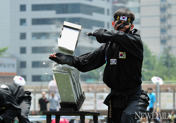 3일 오후 서울광장에서 '호국보훈의 달'인 6월을 맞아 '2012 나라사랑ㆍ겨레사랑 페스티벌'이 열렸다.특전사의 특전무술 시범행사가 열리고 있다.