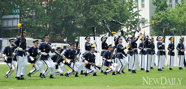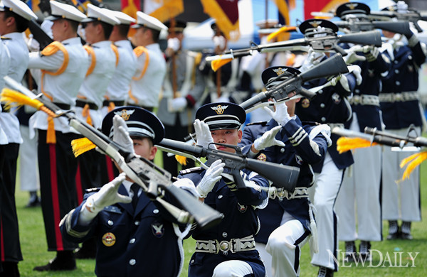 3일 오후 서울광장에서 '호국보훈의 달'인 6월을 맞아 '2012 나라사랑ㆍ겨레사랑 페스티벌'이 열렸다.군악대와 의장대의 합동공연이 열리고 있다.