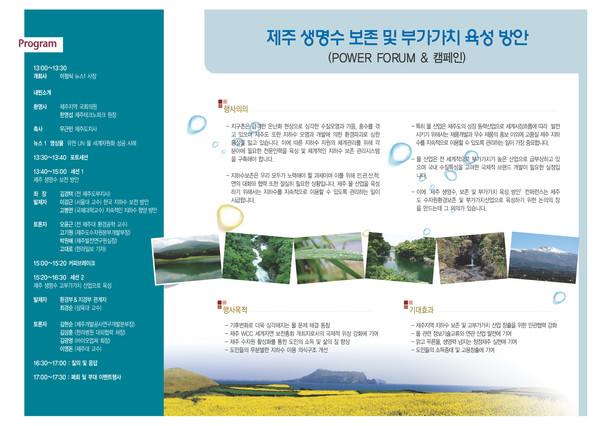 행사장 1층 로비와 제주 올레길에서는 제주지하수 보존과 관련된 현장캠페인 및 기념품을 나눠주는 특별행사도 진행된다.