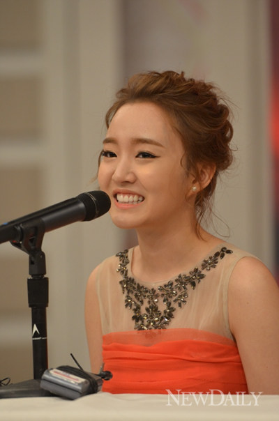가수 윤하가 5일 서울 서초구 아리랑TV에서 열린 'Knockong on Canada by Youn Ha' 제작발표회에 참석해 기자들의 질문에 답하고 있다.
