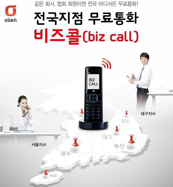 일례로 서울과 부산에 각각 본점과 지점을 두고 있는 개인사업자가 비즈콜에 가입하면 사무실간 무료로 통화할 수 있어 통신비 부담을 덜 수 있다.