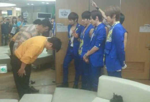 공개된 사진 속 형돈이와 대준이는 비롯 나이는 어리지만 가요계 선배인 인피니트를 향해 정중히 90도 인사를 하고 있는 모습이 담겨 있다. 이에 인피니트는 뒷짐을 지고 있어 보는 이들의 웃음을 자아냈다.