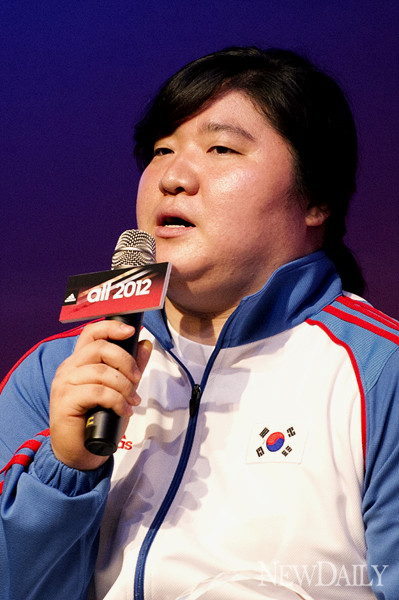 역도에서 2연패를 노리는 장미란은 '올2012'패를 받아들고 "그 어떤 물질적인 선물보다 마음과 염원을 담아주셔서 큰 힘이 되고 열심히 해야겠다는 생각을 하게 된다"며 감사를 표했다.