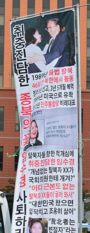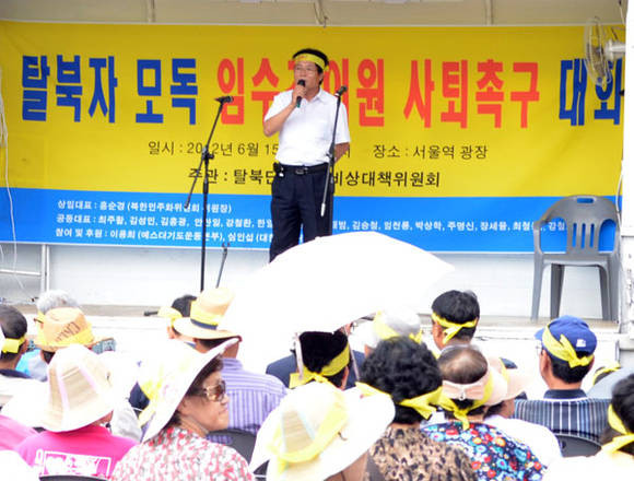 15일 오후 용산구 서울역에서 탈북단체연합비상대책위원회 주최로 '임수경 의원 사퇴 촉구 대회'가 열렸다. 오전에 조명철 의원이 주최한 초청간담회 이후 오후 3시부터 행사가 진행됐다. 이 날 행사에는 탈북자동지회 최주활회장, 자유북한방송국 김성민 국장, 자유북한인연합회 박상학 대표를 비롯한 탈북단체장 대부분이 참가하여 임수경 의원에 대해 성토를 하였다.