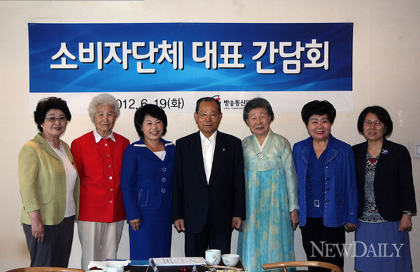 왼쪽부터 안명수 전국주부교실중앙회 회장, 정광모 한국소비자연맹 회장, 김연화 한국소비자단체협의회 회장, 이계철 방통위 위원장, 김천주 대한주부클럽연합회 회장, 전성자 한국소비자교육원 원장, 박인례 녹색소비자연대 공동대표