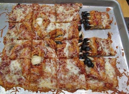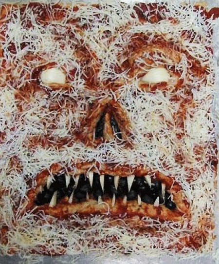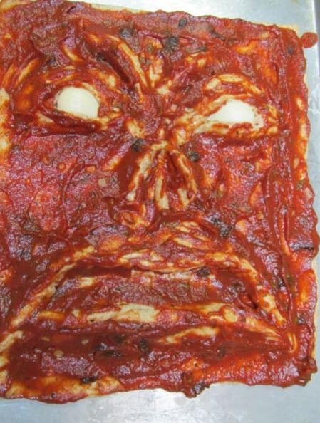 최근 인터넷상엔 '괴수 얼굴 피자' '몬스터 피자' '좀비 피자'라는 다양한 이름으로 네모 모양에 토마스 소스가 범벅된 피자 그림이 올라와 눈길을 끌고 있다.