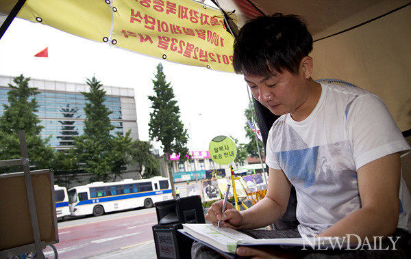 지난 2월 23일부터 집회에 참가한 탈북가수 김충성(36·서울 한샘교회) 씨는 "앞으로 릴레이 1,000일 금식기도를 이어가겠다" 고 밝혔다.