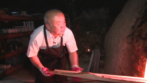 △ 류우익 통일부장관이 도자기 명장 김정옥 선생과 함께 완성된 '통일항아리'를 꺼내고 있다.