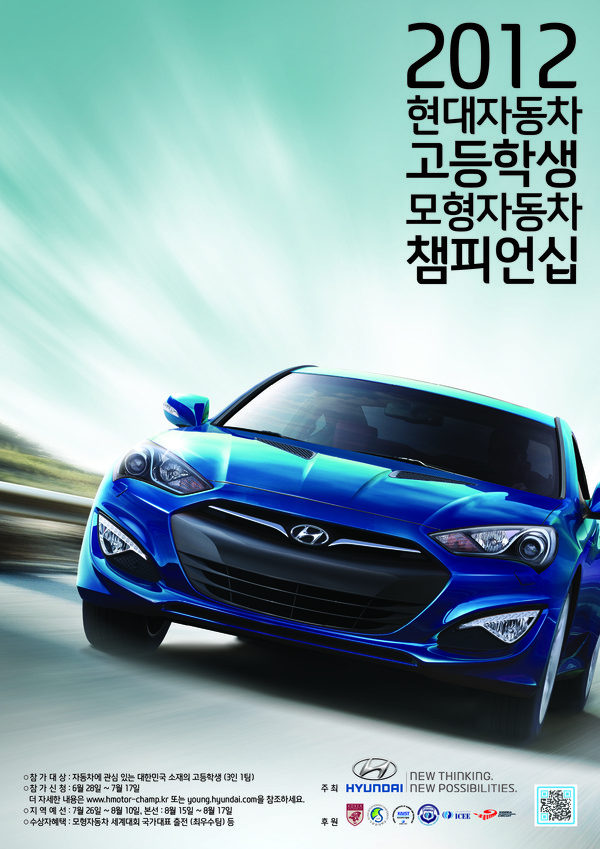 현대차는 28일 고등학생들이 직접 디자인한 차량으로 레이싱 경주를 실시하는 ‘2012 고등학생 모형자동차 챔피언십’을 개최하고 신청을 접수 받는다고 밝혔다.