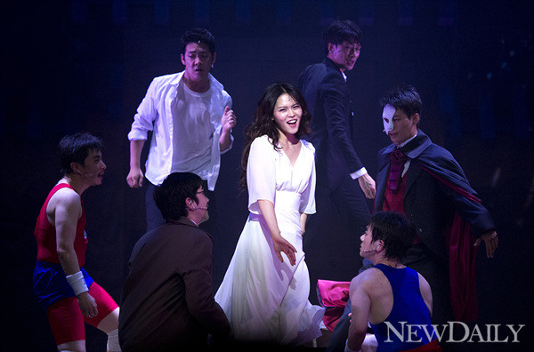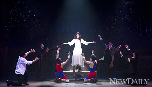25일 오후 서울 삼성동 코엑스아티움 현대 아트홀에서 뮤지컬 '형제는 용감했다' 프레스콜이 열렸다. 이날 프레스콜에서 묘령의 여인 오로라가 두 형제 석봉과 주봉, 그리고 앙상블들과 함께 연기를 펼쳤다.