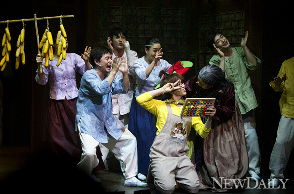 • 25일 오후 서울 삼성동 코엑스아티움 현대 아트홀에서 뮤지컬 '형제는 용감했다' 프레스콜이 열렸다. 이날 프레스콜에서 묘령의 여인 오로라가 두 형제 석봉과 주봉, 그리고 앙상블들과 함께 연기를 펼쳤다.