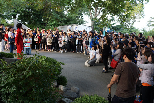 지난 25일 충남의 한 성당에서 진행된 <굿바이 마눌> 촬영 현장에 모인 일본 팬 300여명은 시종 진지한 표정으로 고대하던 류시원의 연기를 지켜봤다.