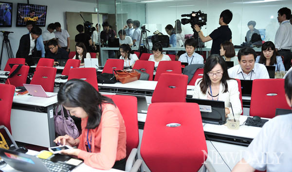 2일 서울 여의도 대하빌딩에서 박근혜 전 새누리당 비상대책위원장의 경선 캠프가 문을 열었다. 공동선대위원장에는 홍사덕 전 의원이, 경선캠프 대변인에는 이상일 의원과 조윤선 전 의원이 각각 내정됐다. 간담회가 진행되기 전 캠프 브리핑룸에서 홍사덕 전 의원을 기다리는 취재진들의 모습.